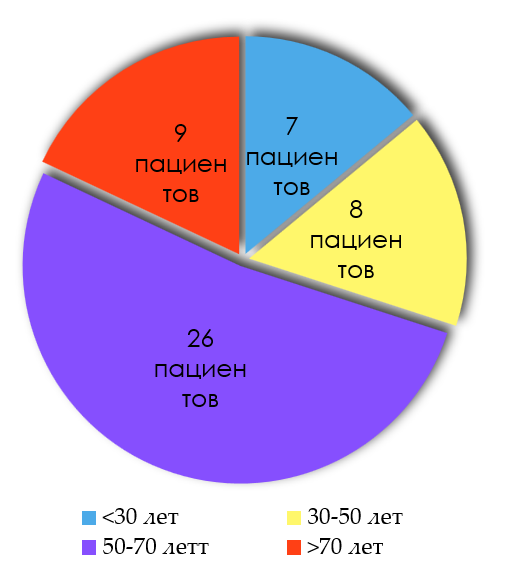 Пациенты с биологическим возрастом от 50 до 70 лет – 26 человек (наиболее многочисленная группа).
