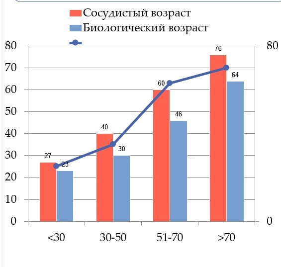 Исследования показывают явную тенденцию: более высокий сосудистый возраст ассоциирован с большей коморбидностью.