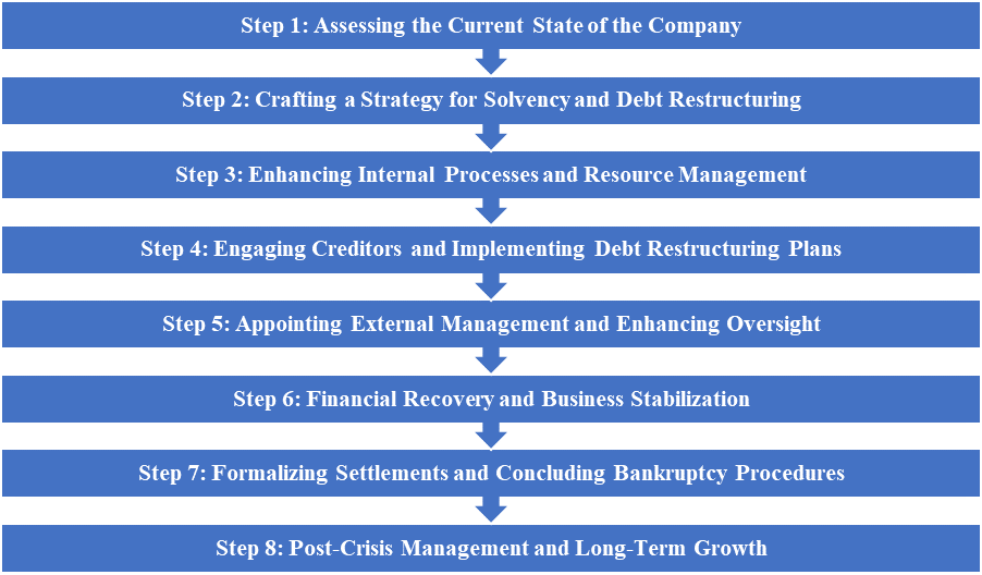 - Development of a strategy for restoring solvency, restructuring debt obligations, and optimizing expenses.