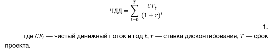 Чистая дисконтированная стоимость (ЧДД) рассчитывается как сумма дисконтированных чистых потоков по формуле 1: