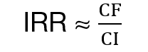 IRR — это ставка дисконтирования, при которой NPV проекта равен нулю. Это означает, что при этой ставке дисконтирования проект будет безубыточным [5]. В рассматриваемом случае (с постоянными денежными потоками), можно использовать приближенный метод расчета IRR без итераций: