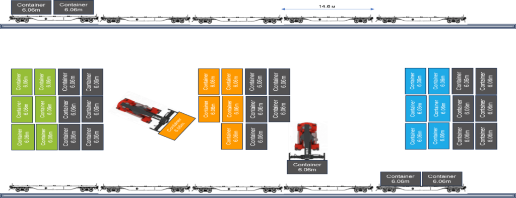 By optimally organizing train assembly and loading operations at Zamyn-Uud station, taking into account destination stations, receiving sidings, unloading front capacity, and zoning, it is possible to assemble trains accurately following the “First In- First Out” (FIFO) principle, ensuring that containers arriving first are loaded first. This approach reduces the number of shunting operations required to position wagons on the sidings at the unloading station, thereby lowering related costs. Furthermore, the waiting time of loaded wagons for the unloading front to be cleared is shortened, decreasing waiting-related expenses.