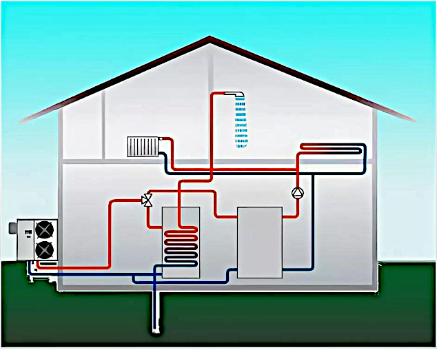 When using nearby bodies of water as a heat source, the contour should be located at the bottom of the reservoir, making sure that it is at least two meters below the surface. The energy conversion efficiency of a heat pump is comparable to that obtained by extracting energy from the ground. Since a meter of pipe can withstand about 30 watts of heat output, 300 meters of pipeline must be laid in the tank to support a 10 kW heat pump. To avoid buoyancy in the pipeline, a weight of approximately 5 kg is applied to each running meter. Commercial versions can have annual energy consumption in the range of 70 to 80 kilowatt-hours per square meter. To provide heating during severe frosts, when there is not enough heat from the external circuit, a bivalent heating scheme can be used. This means that when the temperature drops below a set threshold (bivalent temperature), an auxiliary heat source is automatically activated, usually a small electric heater, which compensates for the lack of thermal energy.