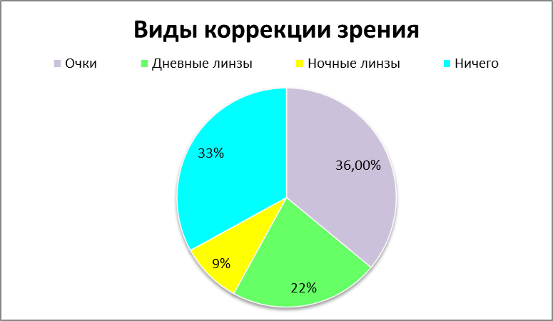 По итогам опроса среди студентов ВГМУ им. Н. Н. Бурденко стало понятно, что большинство студентов (79,4%) знает о существовании ночных линз, но не применяют их. Предпочитают опрошенные более всего носить очки или дневные линзы, так как эти способы коррекции являются более дешевыми и простыми в использовании. Метод коррекции ночными линзами не получил широкого распространения среди студентов медицинского университета.