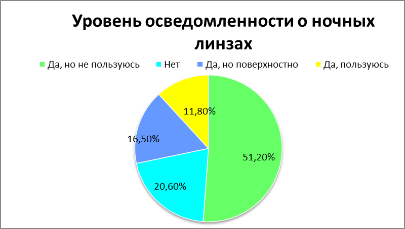 Диаграмма 3. Уровень осведомленности о ночных линзах.