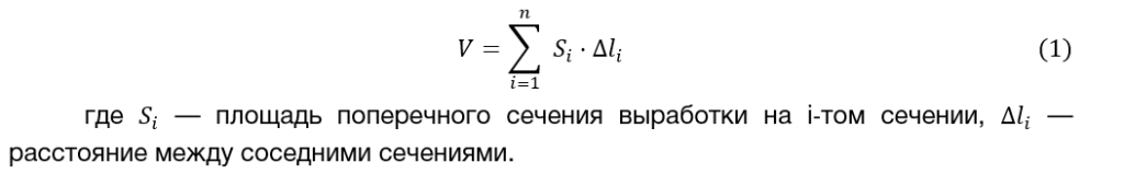 Объём выработанного пространства рассчитывается по разности моделей в соответствии с формулой (1).
