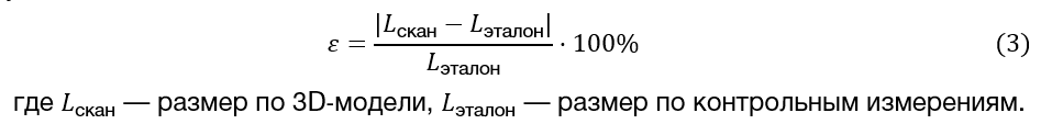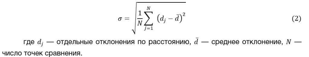 Среднеквадратическое отклонение (СКО) расхождений между моделью сканирования и контрольными измерениями определяется по формуле (2).