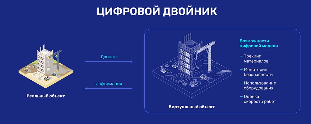 Рисунок 1. Взаимодействие реального и виртуального объектов в концепции цифрового двойника