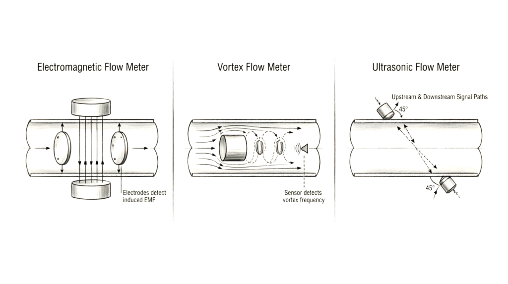 The modern market of measuring instruments presents many types of flow meters, differing in operating principle, accuracy, cost, and application conditions. For water accounting tasks, three types are most common: electromagnetic, vortex, and ultrasonic flow meters. Each of them has its own advantages and limitations, and the correct choice requires a detailed comparative analysis of technical and economic characteristics [2].